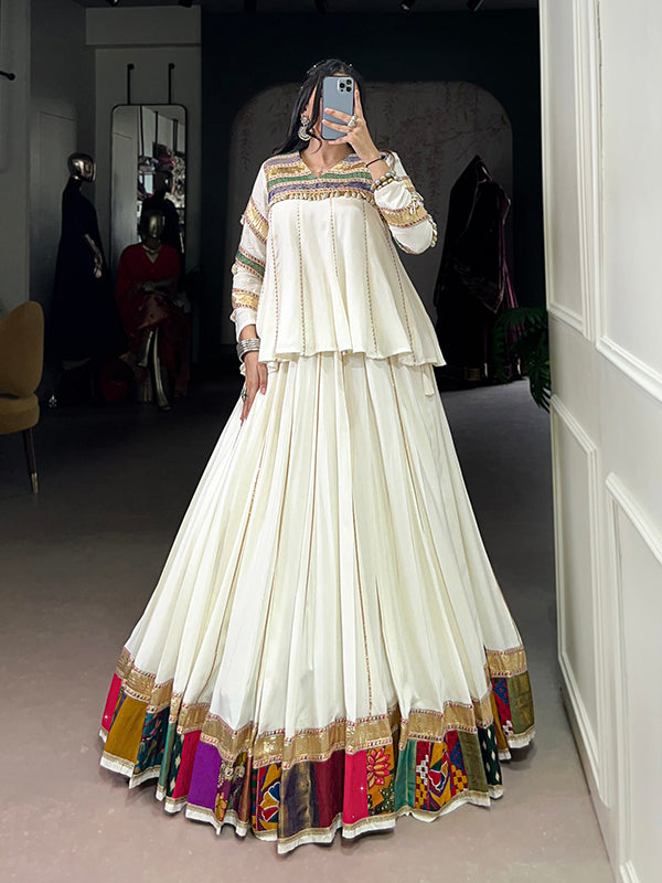 Off White Multi Patch Work Top With Pure Rayon Lehenga