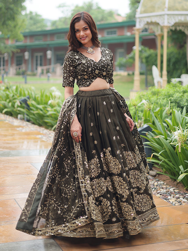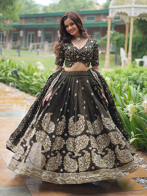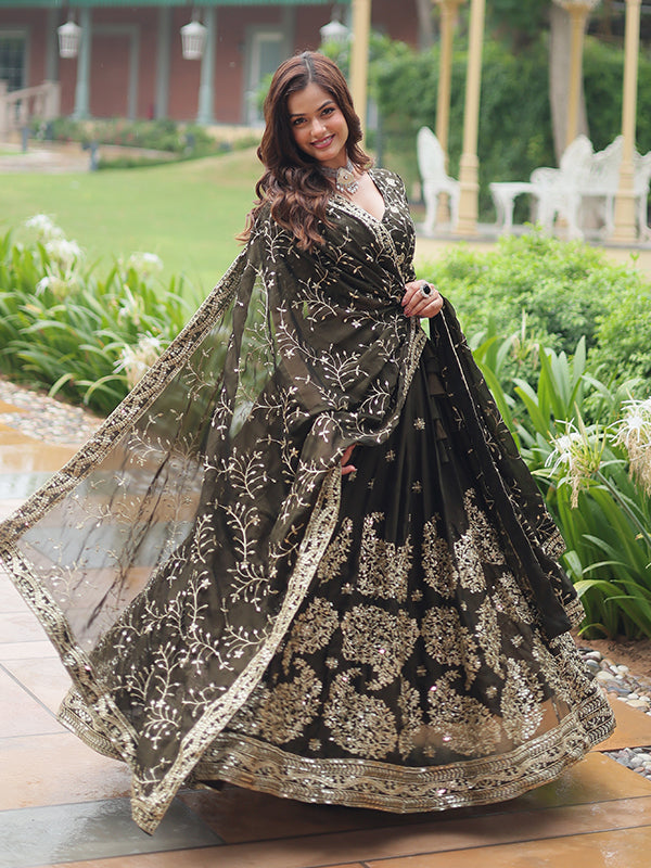 Black Rangoli Silk Sequins Embroidered Lehenga Choli