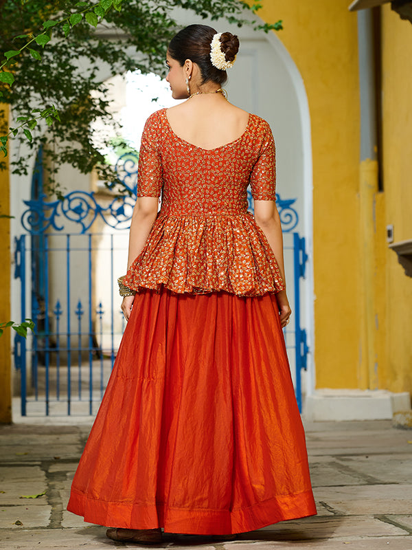 Orange Embroidered Sequins Work Peplum Top With Lehenga – Niharika Jaipur