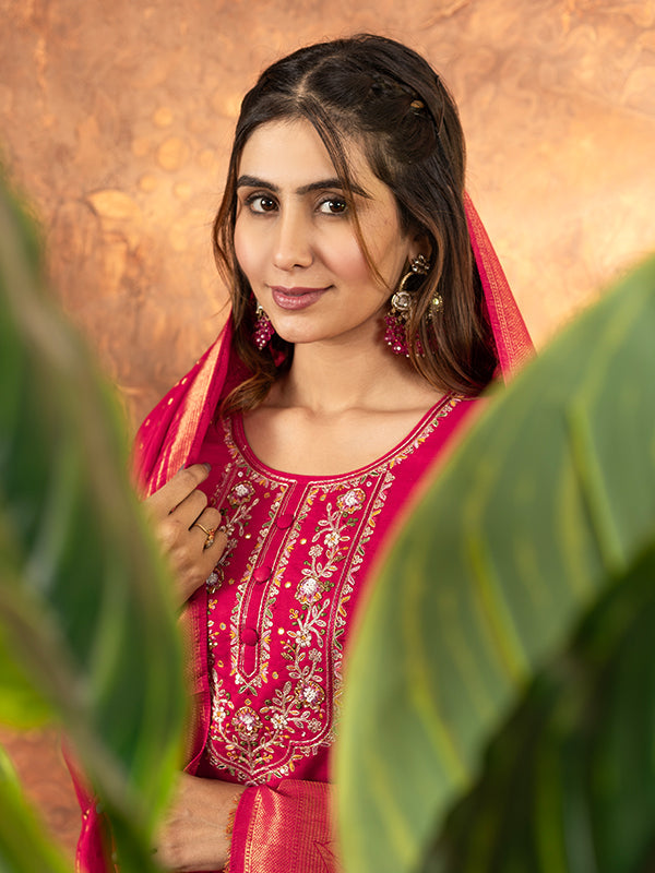 Pink Marina Silk Embroidered With Hand Work Suit Set Pink Marina Silk Embroidered With Hand Work Suit Set