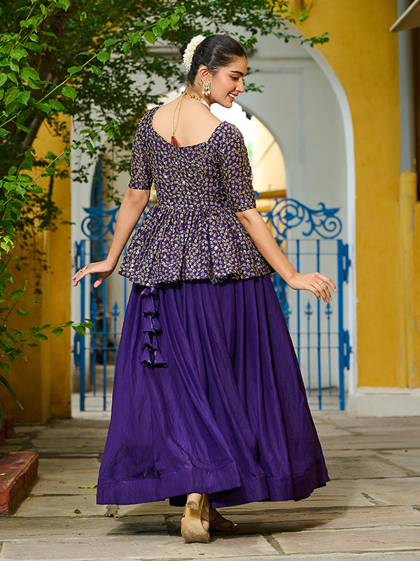 Buy Purple Embroidered Sequins Work Peplum Top With Lehenga Online. This Lehenga Choli Is A Must Have In Every Woman's Wardrobe.