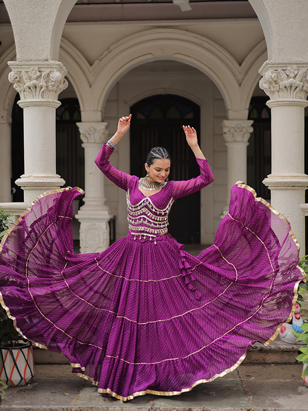 Purple Leheriya Printed Attractive Mirror Lace Lehenga Choli – Niharika Jaipur