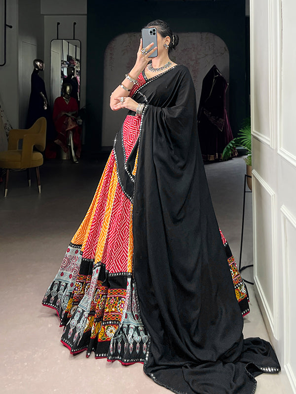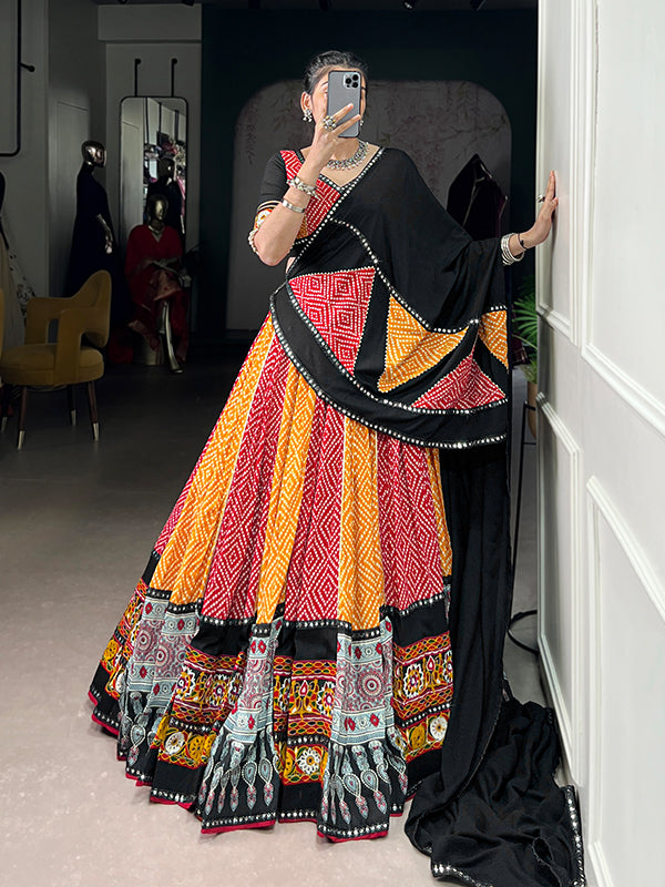 Buy Yellow Bandhej Print Pure Rayon Lehenga Choli With Dupatta Online. This Lehenga Choli Is A Must Have In Every Woman's Wardrobe.